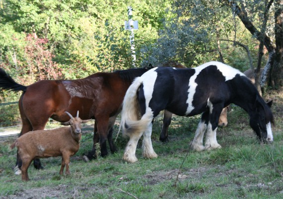 My Gypsy Horse lives with 2 other horses, 1 donkey , 1 goat in 8 hectares of forest and olive grove, with water source; they have natural shelters and open stable.